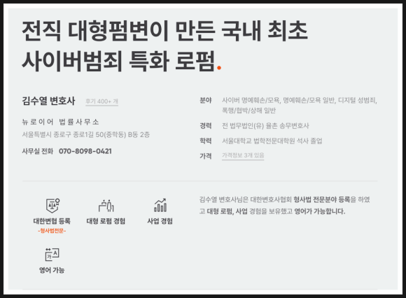 사이버 범죄 특화 로펌 뉴로이어입니다.
