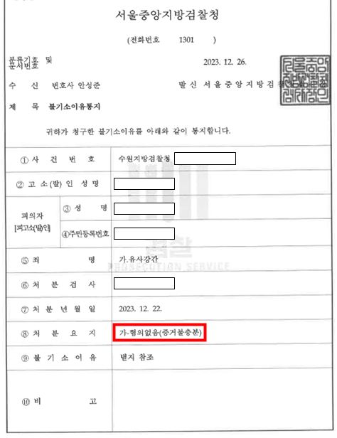 결국 검찰로부터 불기소 결정을 받아 낸 사건입니다.
