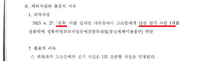 A씨는 2023. 6. 27.경 랜덤 채팅 어플리케이션 '킹톡'에서 여느 때와 마찬가지로 전혀 모르는 B씨에게 성기 사진을 전송하였습니다.