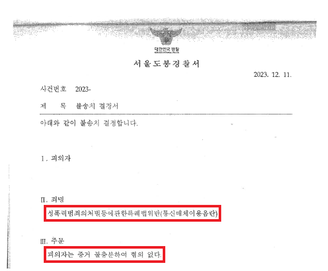 ① "최근 '킹톡'에서의 성적 채팅이나 사진 전송을 가지고 김포경찰서에 여러 명을 고소한 사건이 있었다. 아마 그 사건인 것으로 보인다. 무혐의 충분히 가능하다."라고 조언해드린 뒤,