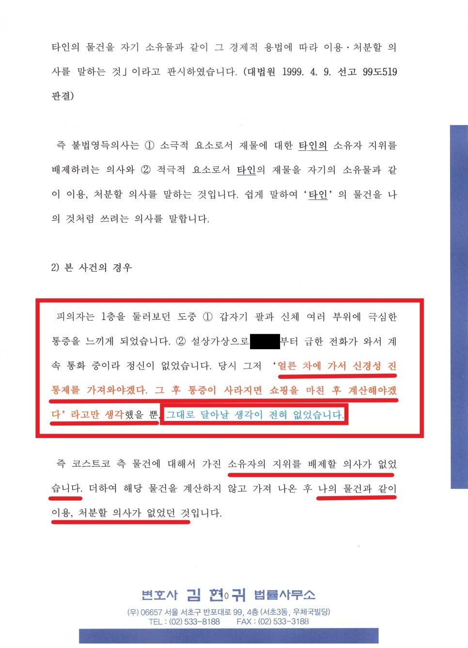 그래서 경찰 조사시 동석하여 피의자에게 왜 절도죄가 성립하지 않는 지 상세히 설명드렸습니다.
