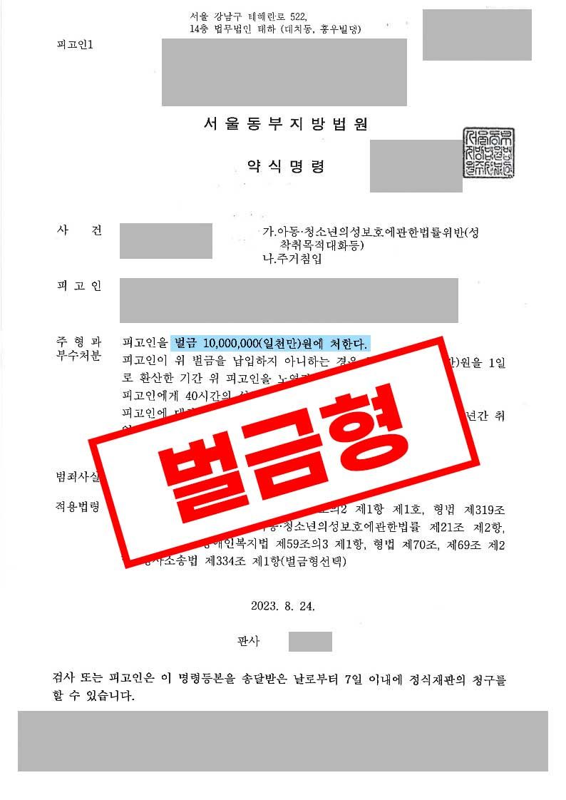 재판부는 의뢰인에게 벌금 1,000만원의 형을 선고하였습니다.