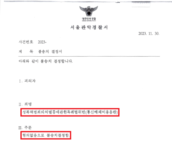 그런데 이로부터 얼마 뒤, A씨는 김포경찰서로부터 "'킹톡'에서 성기 사진 전송한 적 있으시지요? B씨가 고소를 하여 조사를 받아야 합니다. 주소지 관할 경찰서로 이송하겠습니다."라는 전화를 받게 되었습니다.