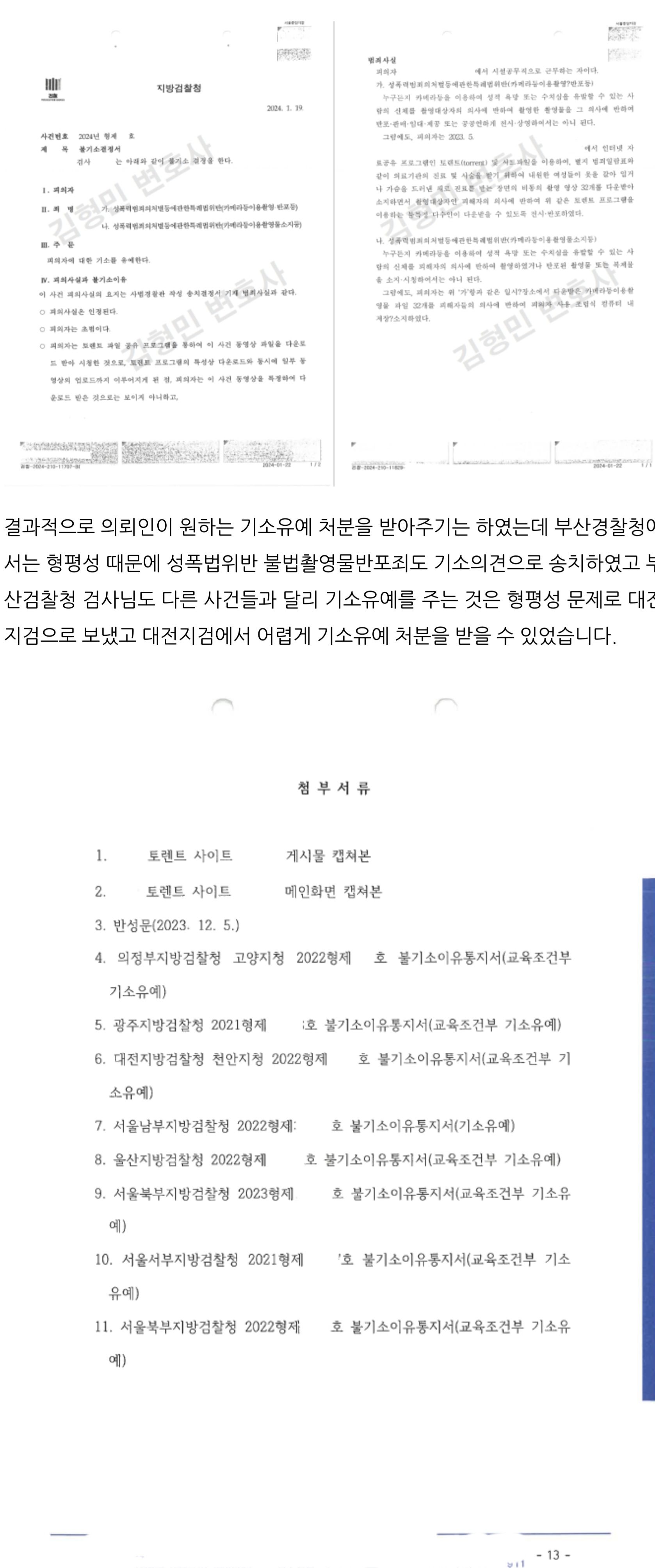 또한 토렌트 관련한 성폭법위반 불법촬영물반포죄에 관하여는 많은 토렌트 사건들을 변호하면서 준비된 자료들이 있어 제출하고 있습니다.