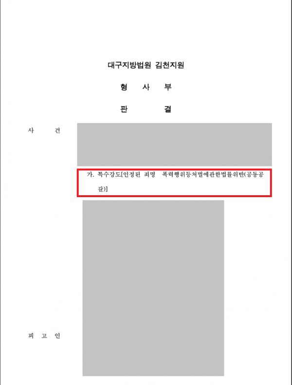 재판부도 공판에서 변호인의 변론 주장과 증거들을 취합하여 심사숙고한 결과, 의뢰인의 죄책은 특수강도죄가 아니라 공갈죄라고 판단하여 특수강도 부분은 무죄로 판단하여 폭처법위반(공동공갈)죄로 선고하였습니다.