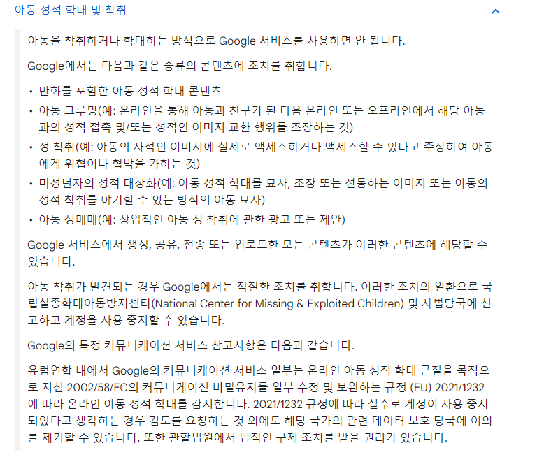 또한 유튜브는 구글과 연결이 되어있고 구글 드라이브 정지 당하면 ncmec로 제보하는 것과 같이 유튜브에 음란물을 비공개로 올리는 것도 문제 될 수 있습니다. 이러한 행위도 정지로 이어지고 ncmec로 넘어가기 때문입니다.