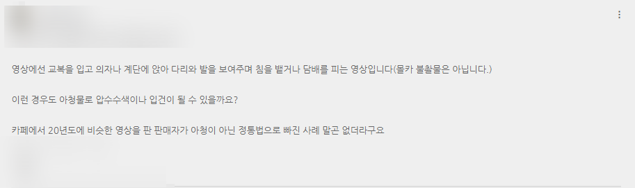 이 댓글의 요지는 교복을 입고 계단에 앉아 다리와 발을 보여주며 침을 뱉거나 담배 피는 영상으로 압수수색을 받을 수 있냐는 내용입니다.