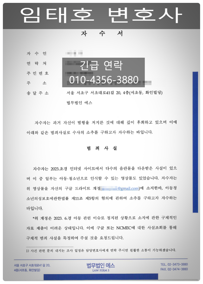 저희 법무법인 에스에서 자수를 말씀드리는 분들은