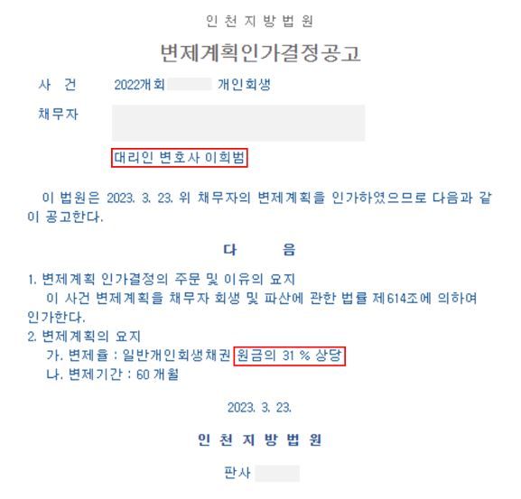 [ 개인회생 성공사례 ] 미성년 자녀 2명 모두 부양가족으로 신청 / 변제율 : 원금의 31%