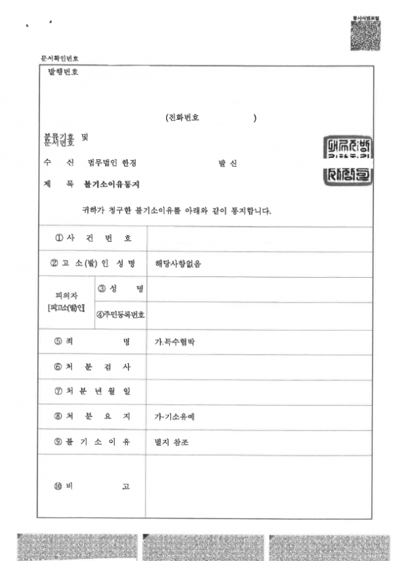 이상과 같은 노력을 한 결과 법원에서는 피의자인 의뢰인에 대하여 기소유예처분을 하였습니다.