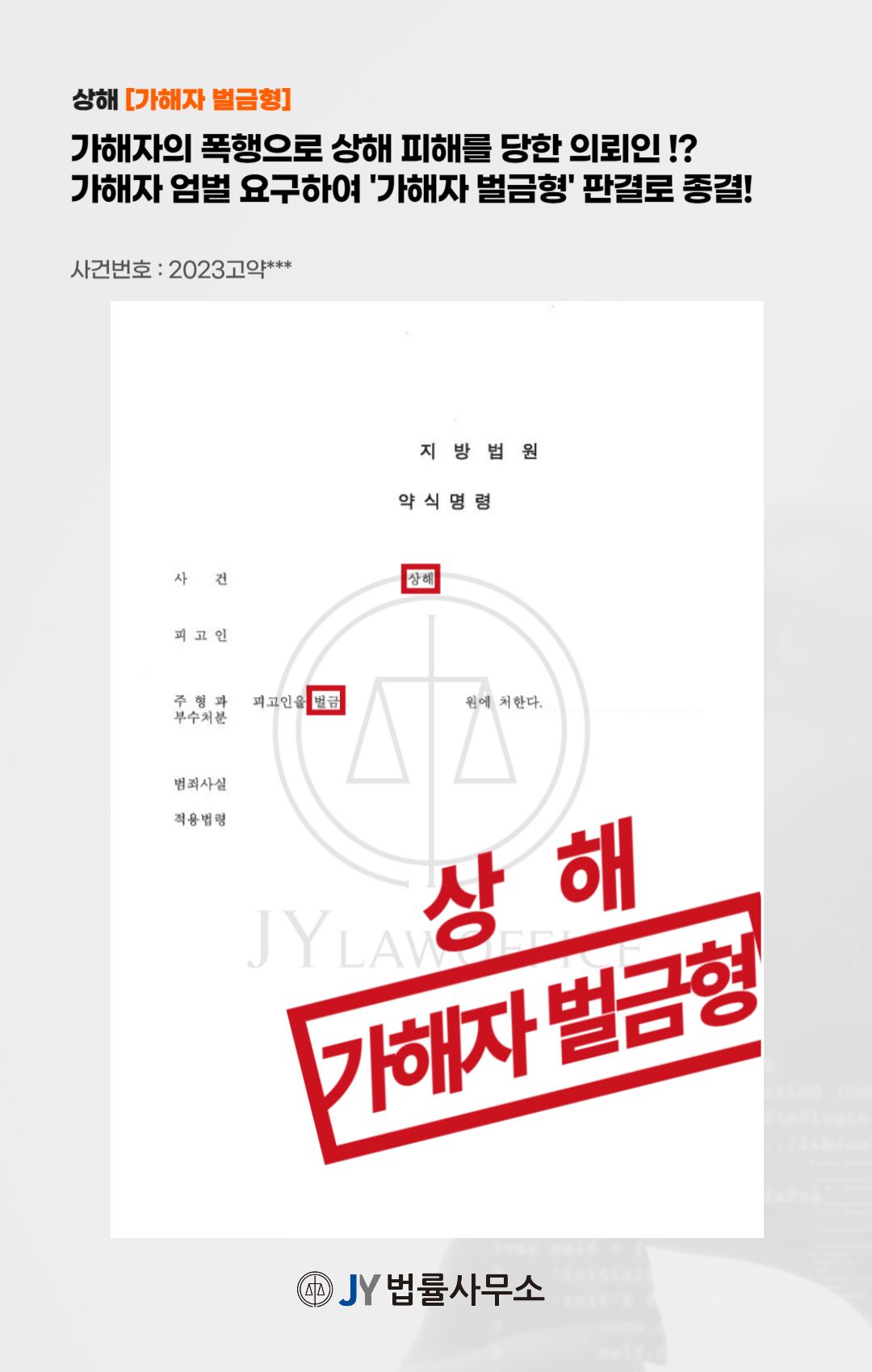 결국 가해자는 벌금형의 판결을 받았고, 변호사는 의뢰인의 피해 회복을 위해 이후 절차에 대해서도 법리적 자문을 전해드렸습니다.