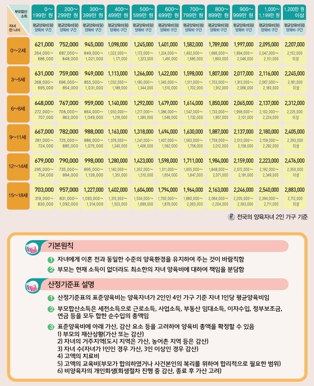 A는 자녀들이 중학교, 초등학교 고학년이 되면서 기존에 지출하던 비용이 크게 증가하고 소득도 월 100~200만원 정도 밖에 안 되고 B의 급여가 500~600만원 정도 되므로 서울가정법원 양육비 산정기준표에 따라 월 219만원으로 상향 하여 지급해 줄 것을 주장하였습니다.