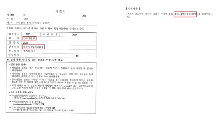 ○ 결론 : 불송치(경찰 단계)