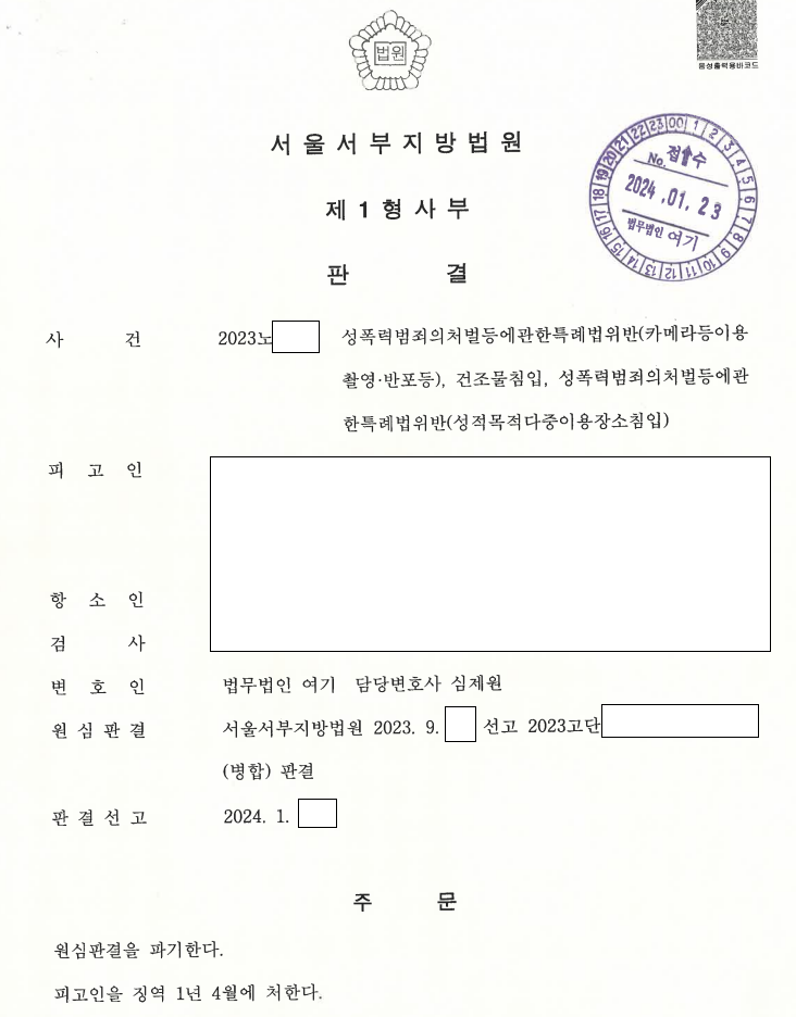 안녕하세요. 심제원 변호사입니다. 오늘은 서울서부지방법원 형사 항소심 사건의 성공사례를 말씀드립니다.