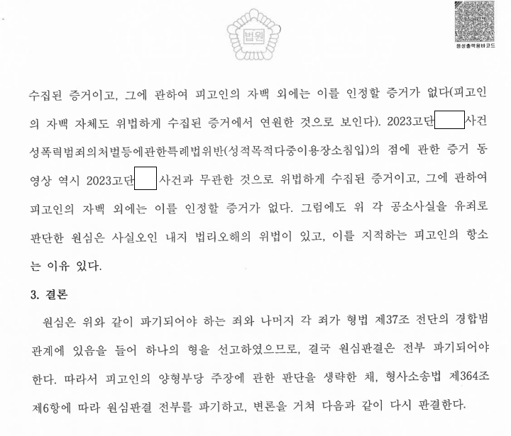 그리고 저는 예외적인 사유에 해당되지 않으며, 위법한 영역으로 들어온 이상 다시는 적법하게 하자가 치유되지 않는다고 추가 반박의견을 제시하였고, 마침내 판결이 선고되었습니다.