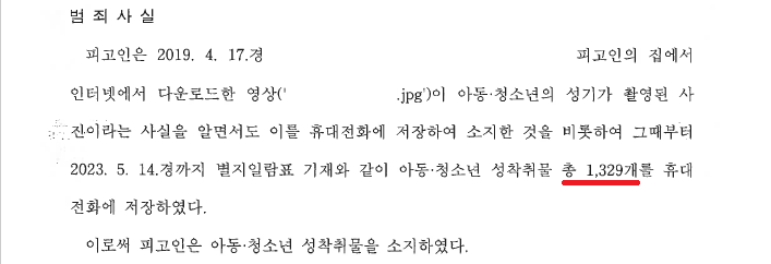 A씨는 'N번방', '박사방' 등 사건 이후 성착취물 관련 사건을 매우 강하게 처벌하는 사회적 분위기 속에서 약 4년이라는 긴 시간 동안에 총 1,329개라는 매우 많은 양의 성착취물을 다운로드받아 소지하였으므로, 강한 처벌을 피하기는 어려울 것이라고 생각하였습니다.
