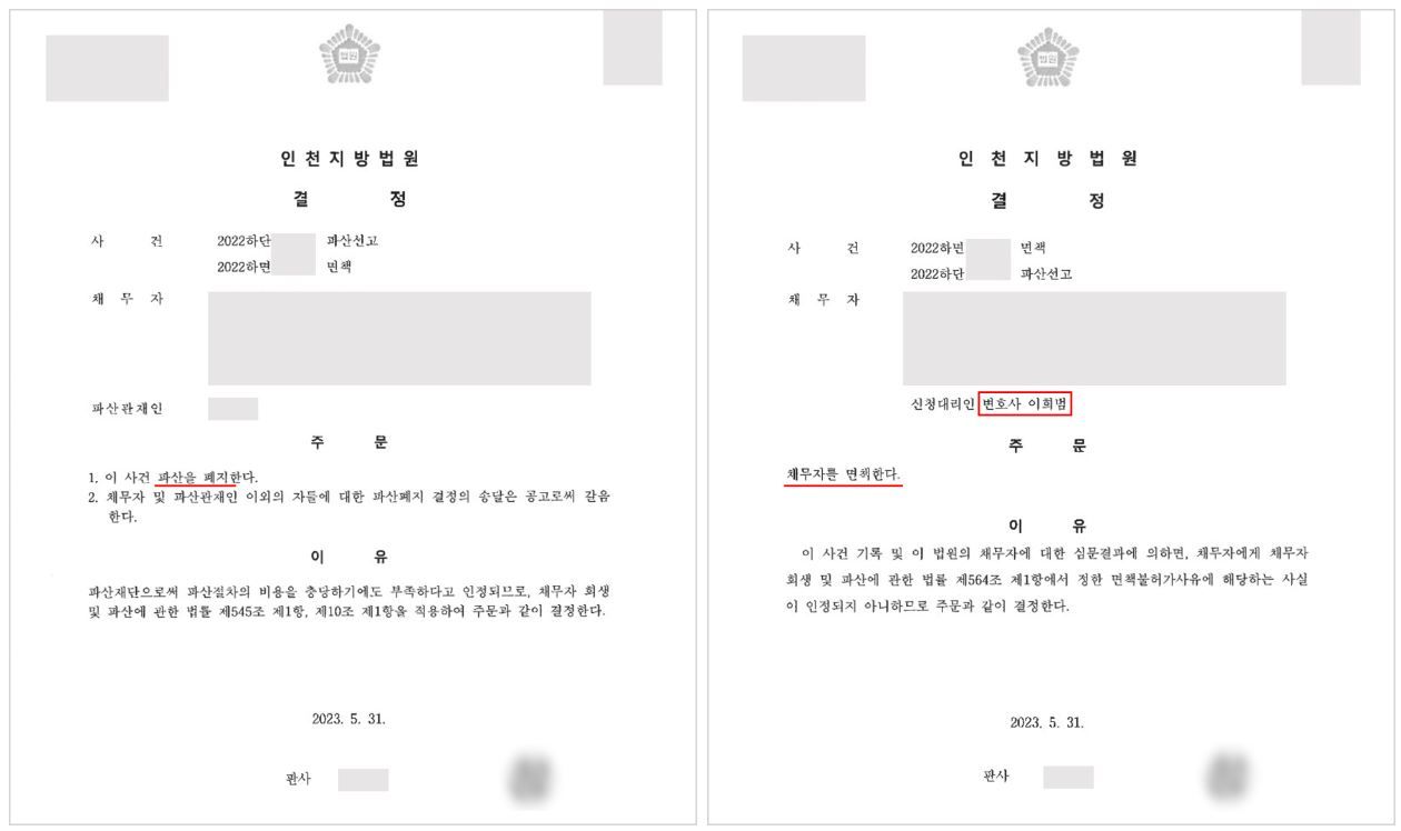 [ 개인파산 성공사례 ] 폐지 결정과 동시에 면책 결정