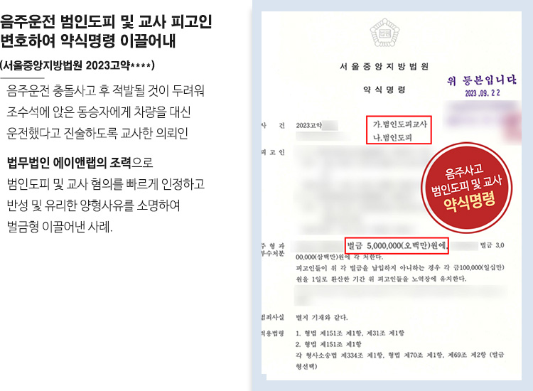 ![[벌금형] 음주운전 범인도피 및 교사 사건 변호](/_next/image?url=https%3A%2F%2Fd2ai3ajp99ywjy.cloudfront.net%2Fassets%2Fimages%2Fpost%2Fcase_title.jpg&w=3840&q=75)