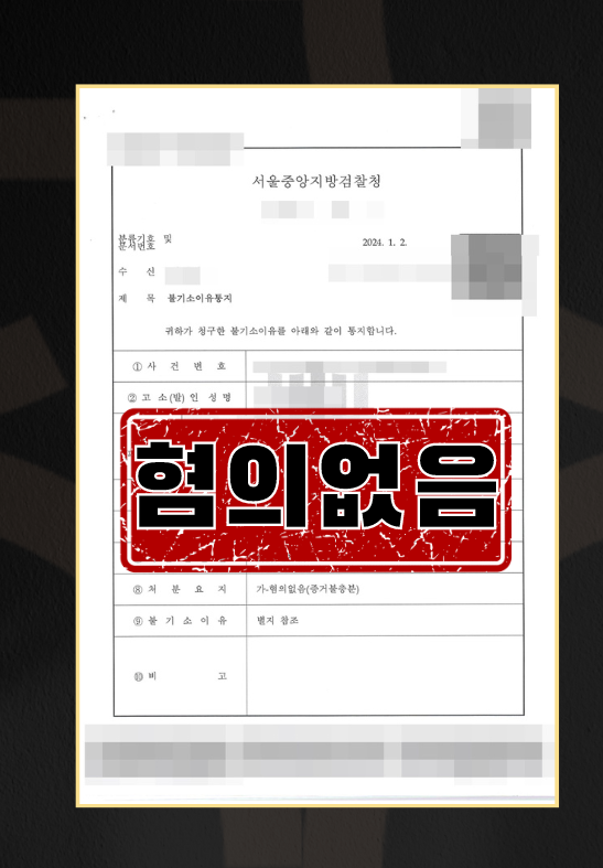 이에 검찰에서는 저희 주장을 받아들여 혐의없음 결정을 내렸습니다.