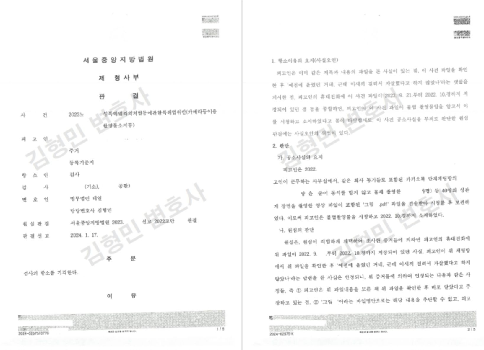 1심에서 무죄판결을 받는 것이 어렵지 항소심은 쉽게 가는 것이 보통이나 이 사안에서는 변론종결 이후에도 피해자변호사가 참고자료를 제출하였고 제가 이에 대하여 반박하는 서면을 제출하는 등 치열하게 진행되었습니다.