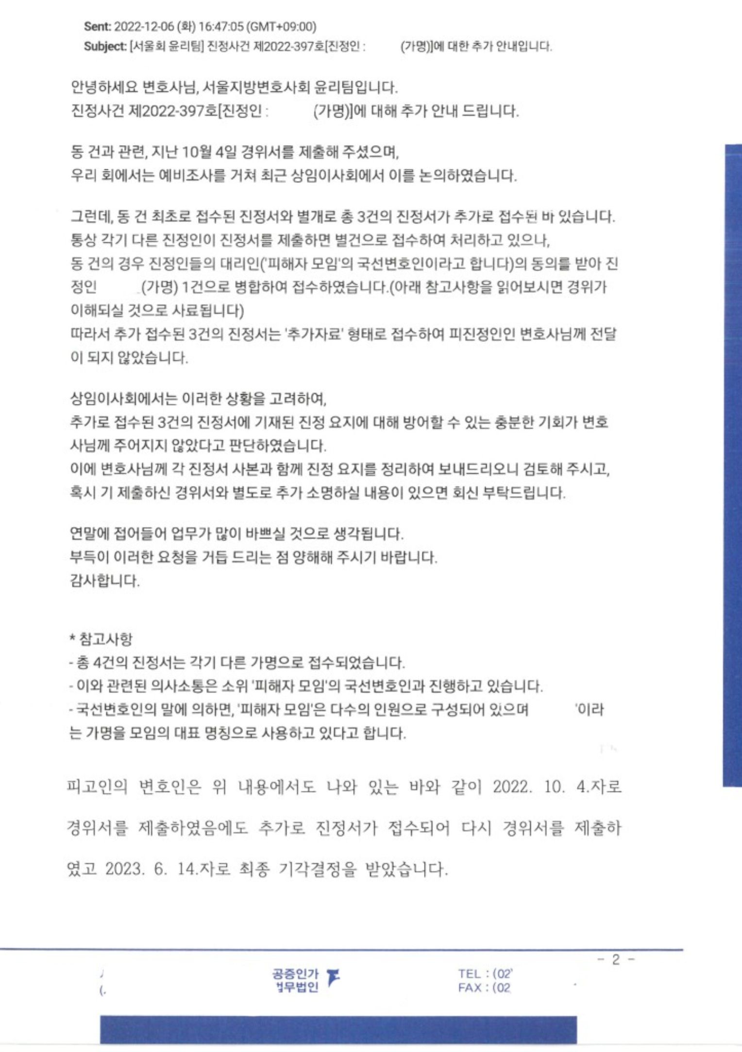 제가 추가로 제출한 참고서면의 일부입니다. 윤XXX 돈XXX 사건에서 무죄판결을 받은 것은 제가 변호한 사건 이외에 없는 것으로 알고 있는데 다수의 진정을 포함한 피해자변호사의 참고자료 제출은 제가 윤XXX 돈XXX 사건을 가장 잘 변호하고 있다는 객관적인 증표이지 않을까 싶습니다.