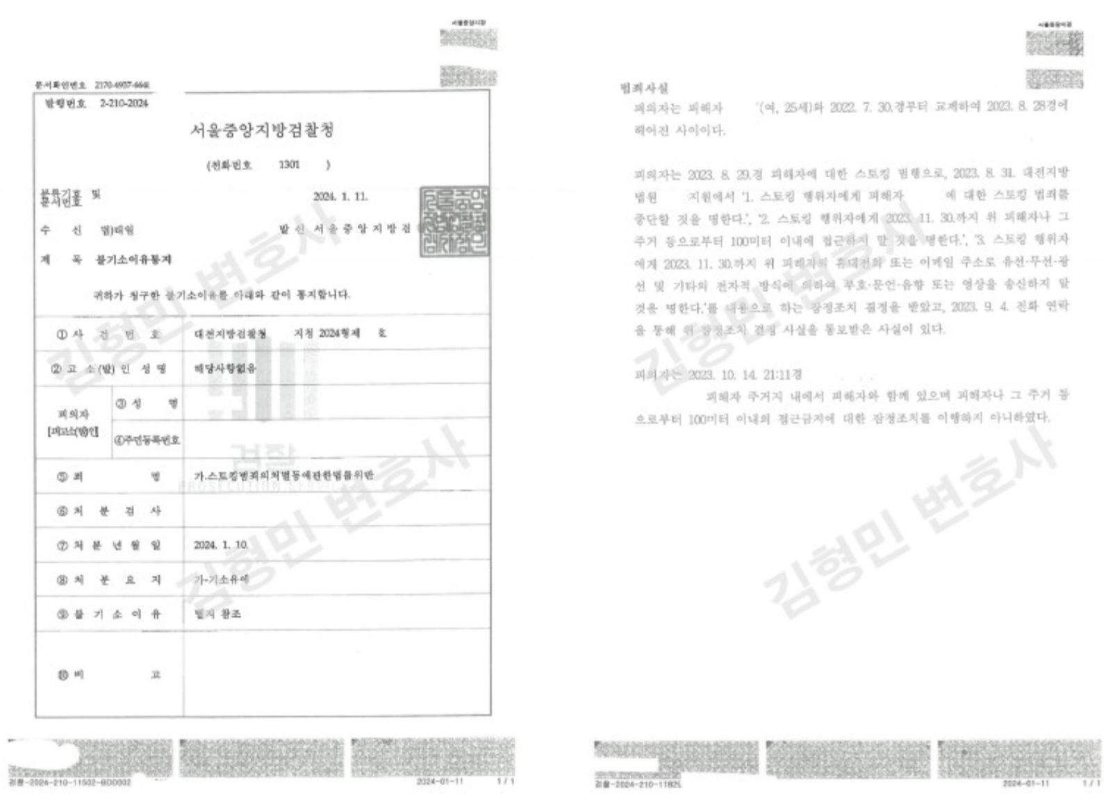 추가로 스토킹 관련 기소유예를 받은 건이 있어 소개합니다.