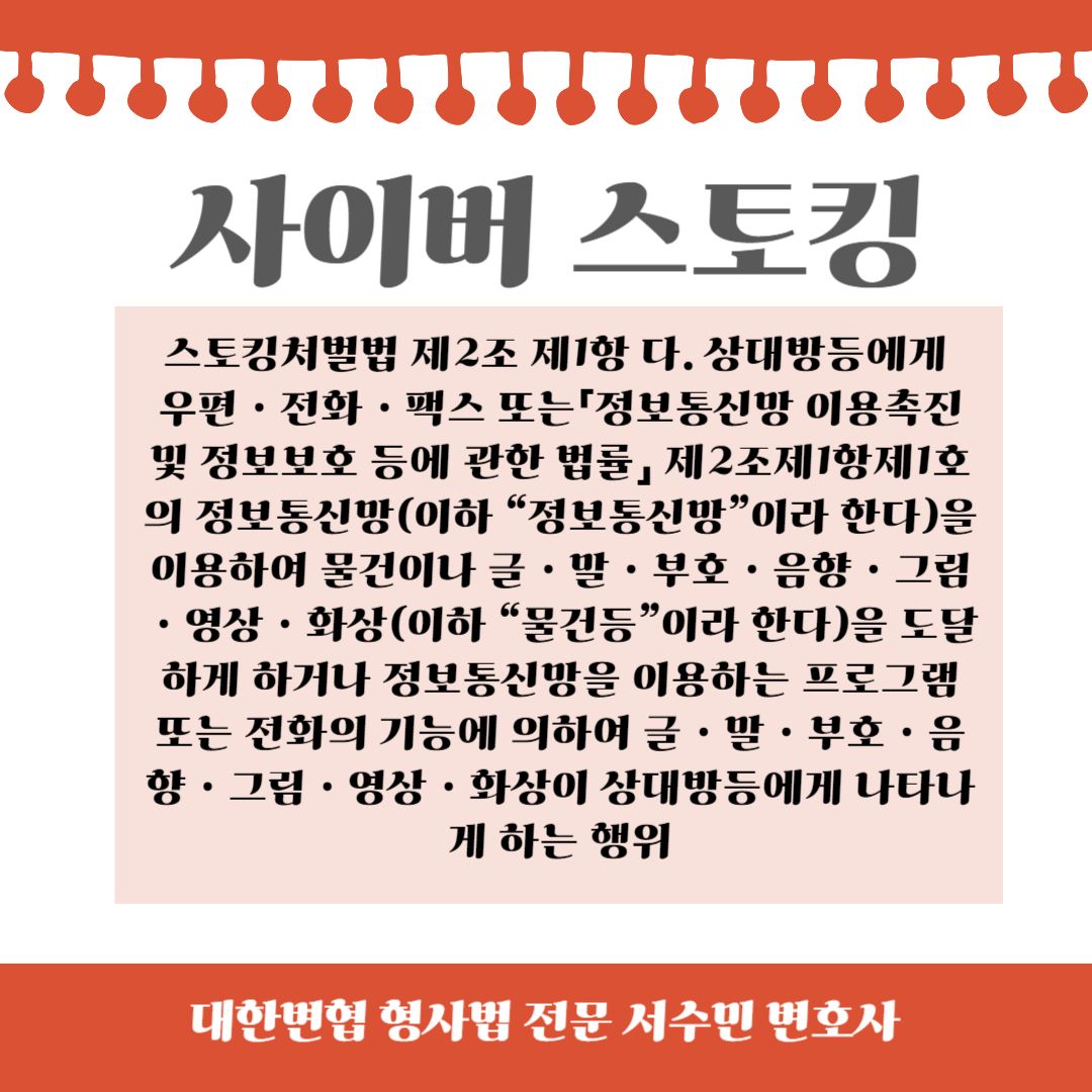사이버 스토킹은 " 편지, 유선전화, 팩스처럼 고전적인 연락을 취하는 것은 물론이고, 이메일이나 인스타그램 DM, 블로그 댓글 등을 통해 연락을 취하는 것도 포함되며, 글이나 말 이외에도 음향, 그림, 영상 등을 나타나게 할 경우"에 인정되는 행위입니다.