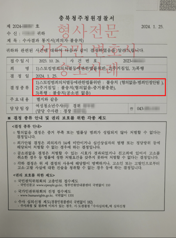 결국 이 사건은 고소사실 전부 불송치 의견으로 귀결될 수 있게 되었습니다.
