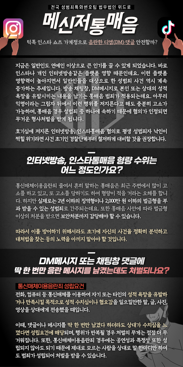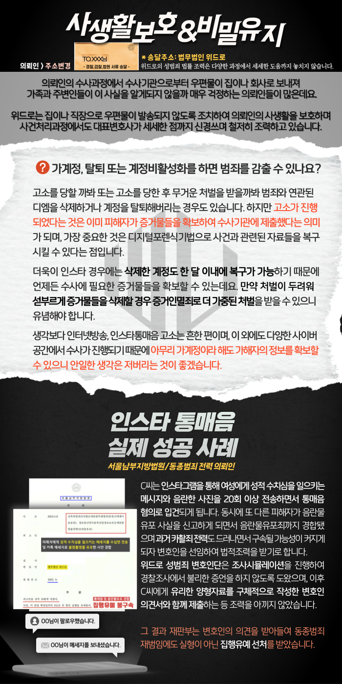 꼭 성범죄를 많이 다뤄 본 변호인단에게 상담과 조력을 받아보시길 바랍니다.