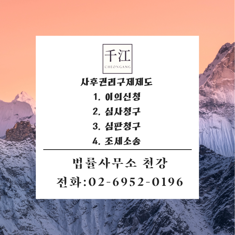 반면 사후권리구제제도란 납세고지서를 받은 후에 구제받을 수 있는 것으로써 '이의신청', '심사청구', '심판청구', '조세(행정)소송'이 있습니다.