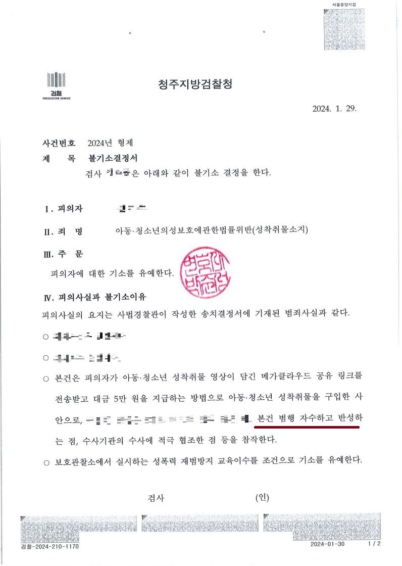 그리고 진행하고 있는 자수 사건들이 계속해서 기소유예 처분으로 마무리되고 있는데, 시간이 지날수록 아청법 및 디지털성범죄 사건에 대한 선처 빈도수가 낮아지고 있는 실정에 비추어 볼 때, 현명한 선택을 함에 있어 한 요소가 될 수 있을 것입니다.