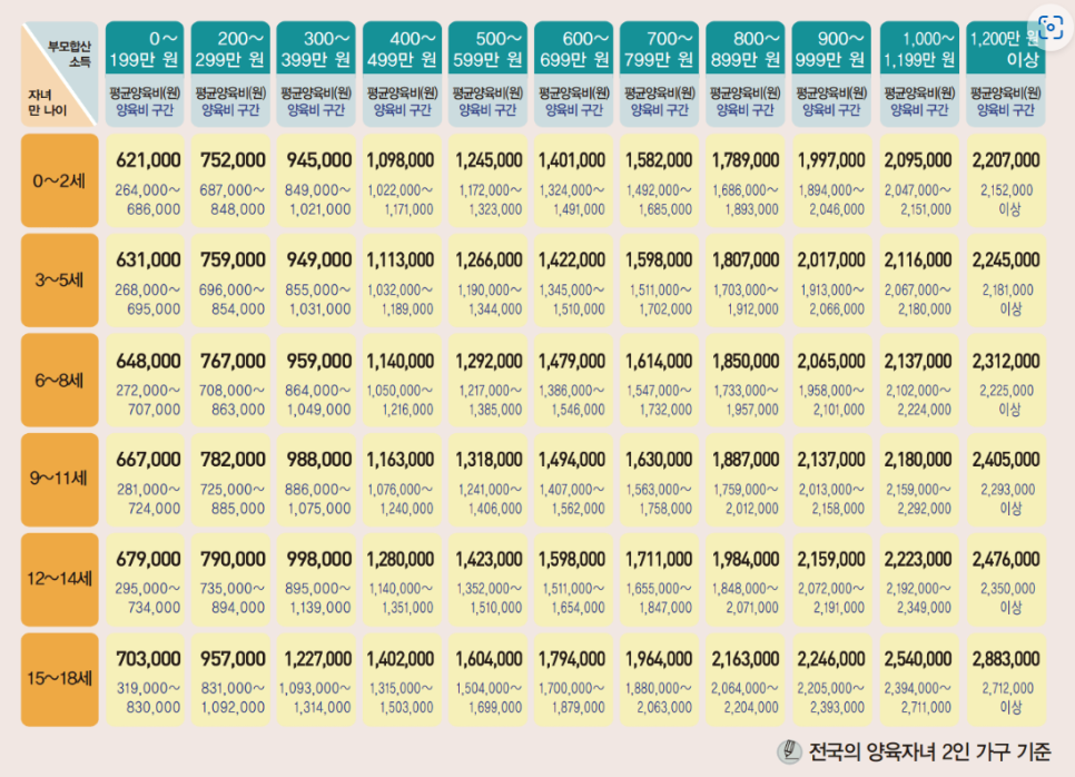 4. 2023년 서울가정법원에서 정한 양육비산정표에 따르면 사건본인 나이와 부부 합산소득에 부합하는 양육비 산정 금액은 2,883,000원이고 그 중 피고의 추정소득 비율은 85.71%이므로 피고가 부담하여야 하는 금액은 2,471,000원이다.