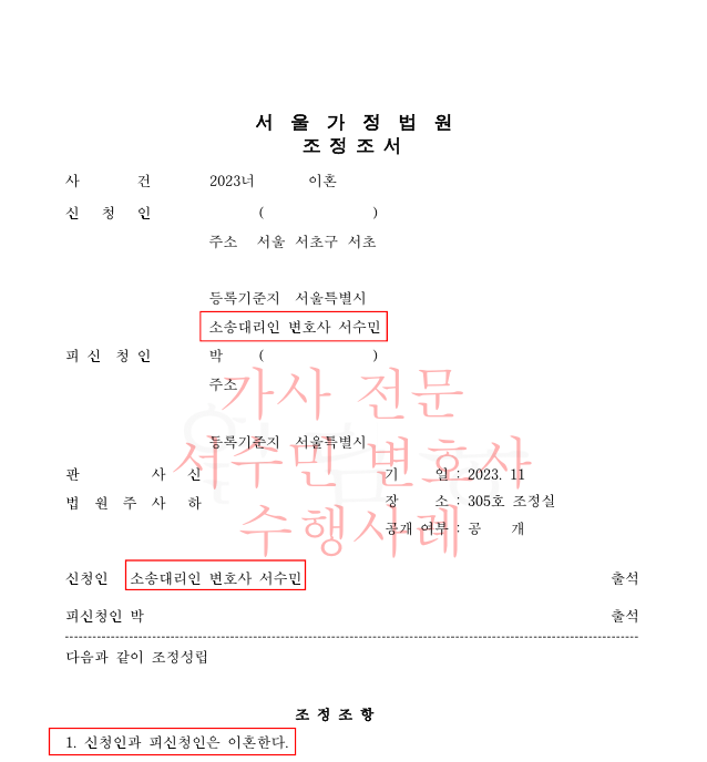 이에 의뢰인은 대한변호사협회 등록 가사법 전문 서수민 변호사에게 이혼 사건을 위임하게 되었습니다.