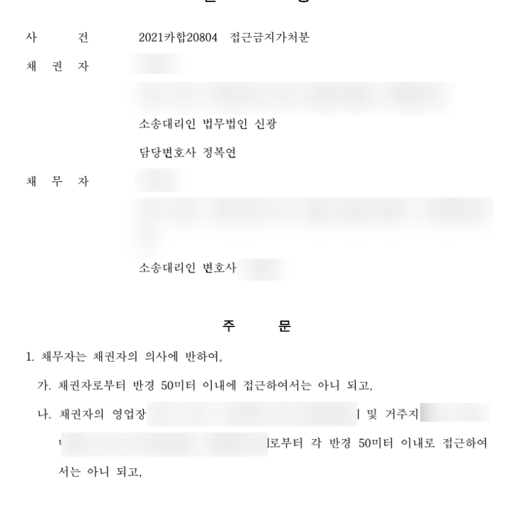 이번 시간에는 의뢰인이 당한 스토킹 범죄에 대해 접근금지 가처분을 신청하여 승소한 사례를 알려 드리겠습니다.
