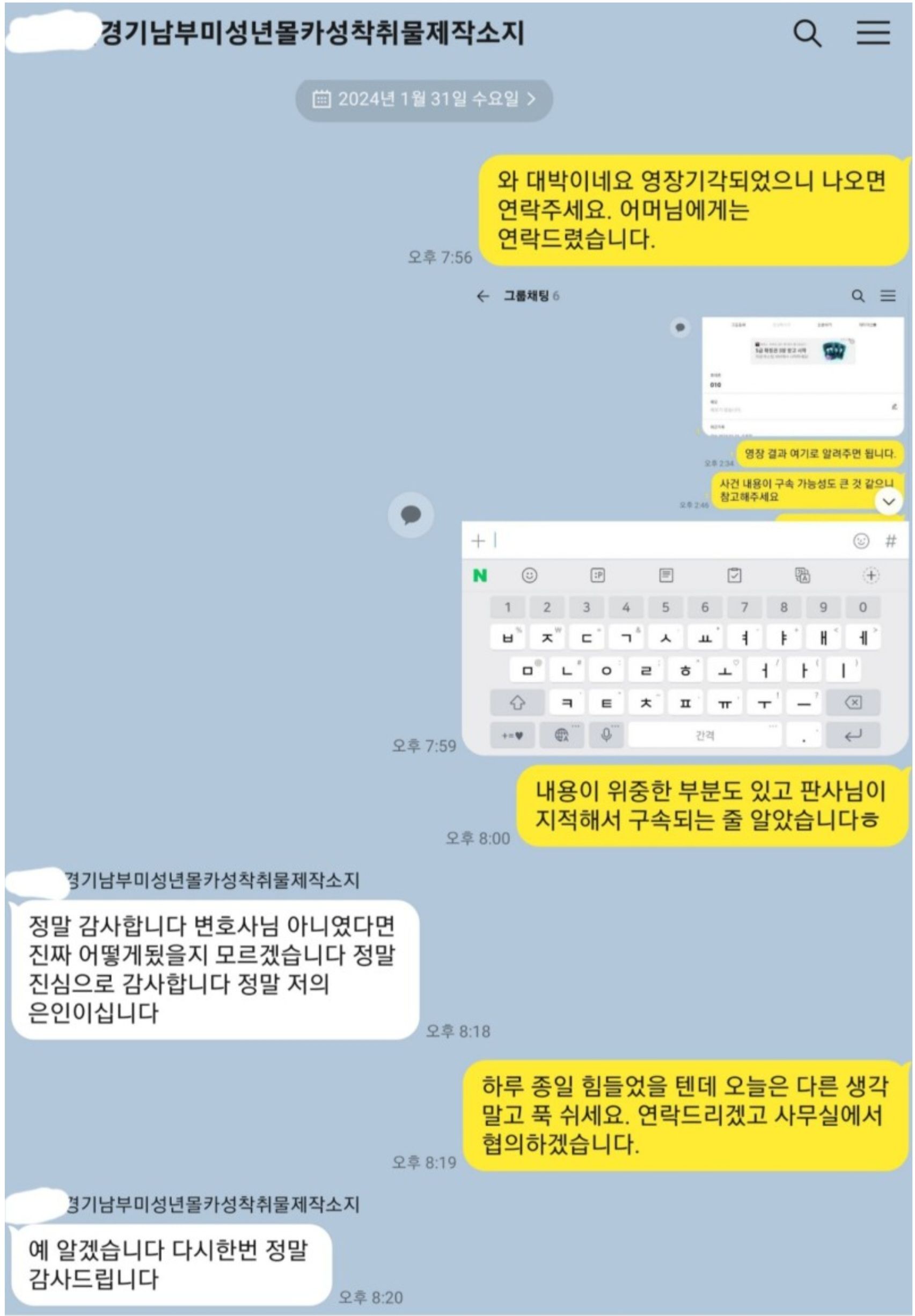 결과적으로는 구속영장을 기각시켰고 기쁜 소식을 전달해줄 수 있었습니다. 어제의 구속영장 기각은 제가 생각하더라도 이 유형의 사건 변호는 너무 잘하는 것 같다는 생각이 들기도 했습니다.