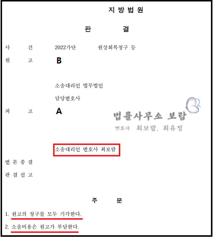 이에 A는 B의 청구에 대응하기 위해 법률사무소 보람을 찾았습니다.