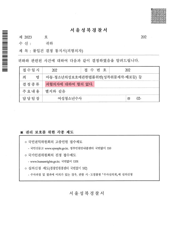 그 결과, 경찰조사 단계에서 무혐의 결정을 받을 수 있었습니다.