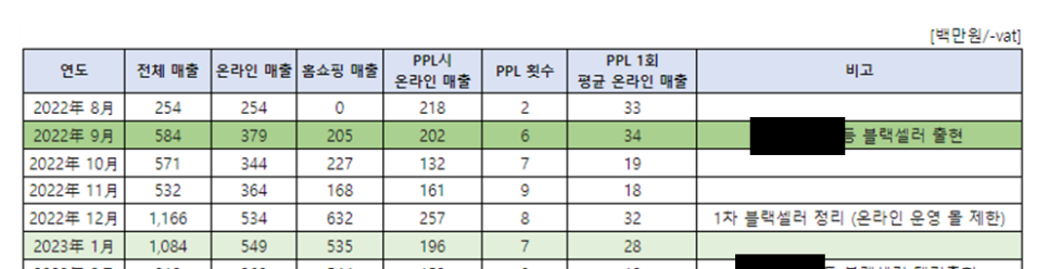 홈쇼핑 매출의 경우 약 6배 가량 증가하였고, 전체 매출 역시 2배 가량 증가하는 쾌거를 이루었습니다.
