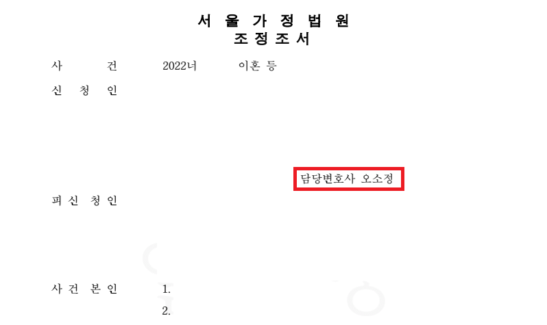 이후 의뢰인과 상대방 배우자 사이에 합의안을 도출하여 검토한 뒤 조정신청서를 접수하였고,