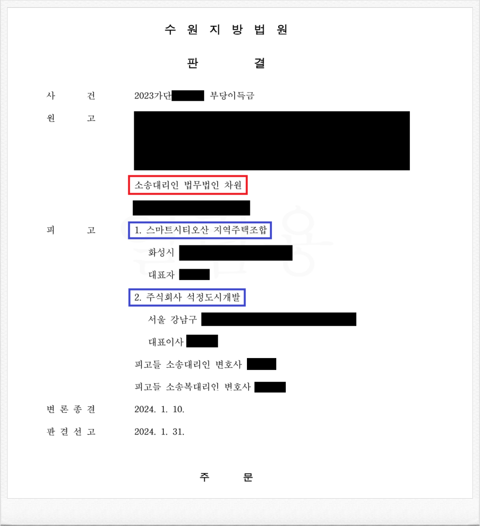 그러나, 가입 후 스마트시티오산 지역주택조합 측의 사업이 계획대로 진행되지 않았고, 이에 의뢰인은 정식 민사소송을 통하여 기 납입한 금원의 반환을 원하셨습니다.