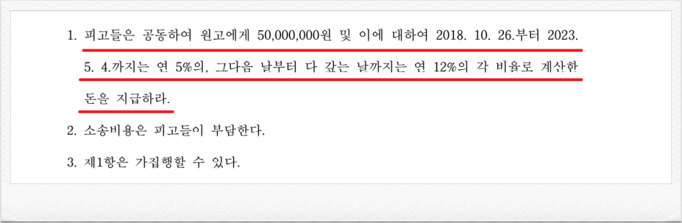 결국, 재판부는 이러한 저의 주장을 받아들였고, 피고들은 공동하여 의뢰인에게 기지급 받은 금원 및 이에 대한 지연손해금을 지급하라는 내용의 판결을 이끌어 내었습니다.