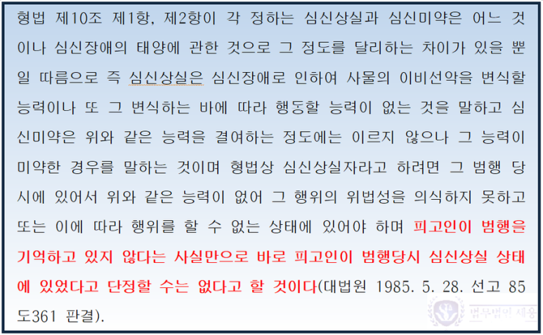 아무튼 이와 같이 기억이 나지 않는다는 것이 곧바로 심신미약인 것은 아닙니다.