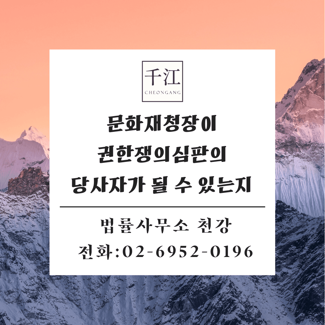 결국, 법률에 의하여 설치된 문화재청장은 권한쟁의심판의 당사자능력이 인정되지 아니하여, 문화재청장을 상대로 권한쟁의심판을 제기한다면 각하 결정이 이루어질 것입니다.