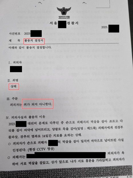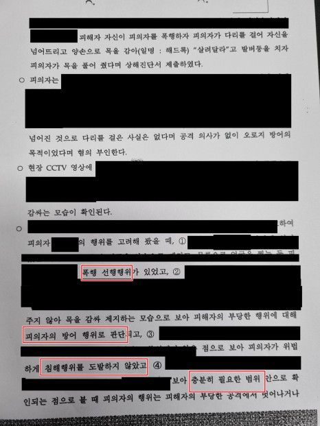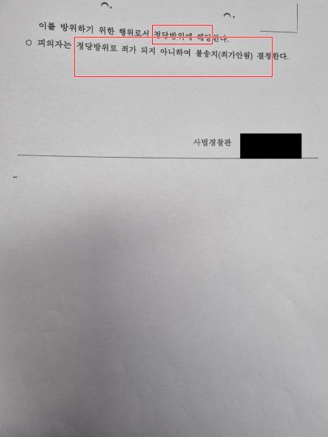 경찰 단계에서 쌍방폭행이 아닌 정당방위가 인정되어 불송치될 가능성을 크게 기대하지는 않았습니다.