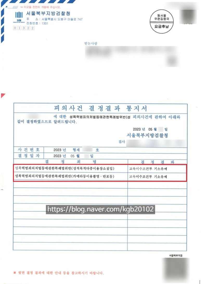 성적목적다중이용장소침입, 카메라등이용촬영죄로 검찰에 송치되었으나 교육조건부 기소유예로 종결된 사안을 소개하겠습니다.