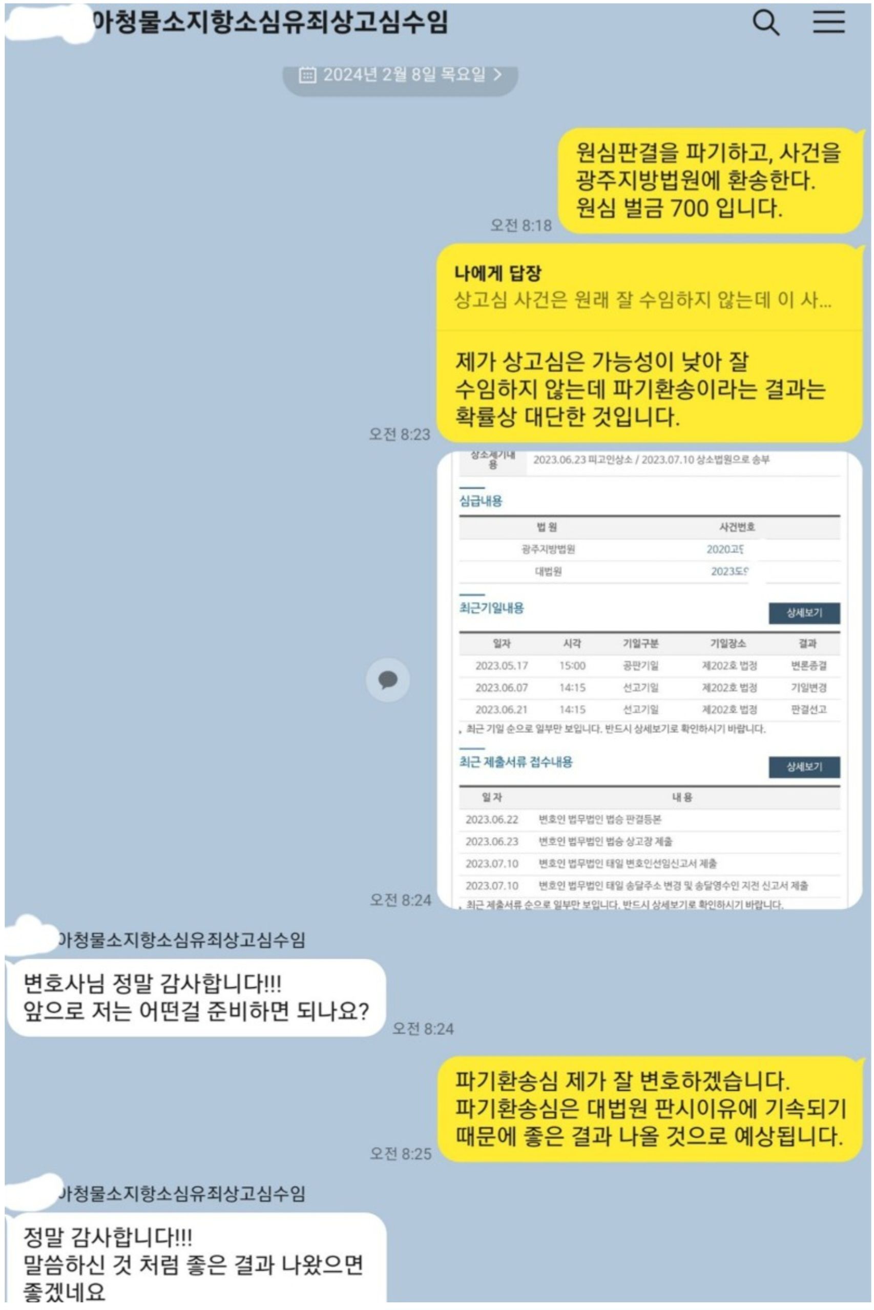 판결문의 내용을 보니 원심은 대법원 판결이유에 기속되기 때문에 파기환송심에서는 무죄판결이 나올 것으로 예상하고 있습니다. 보통 상고사건 수임은 파기환송심에서 별도 수임료를 받지만 저 역시 수임할 때 파기환송이 될지 확신을 하지 못해서 파기환송심까지 추가 비용없이 변호하기로 약정하고 진행하였습니다. 파기환송으로 오히려 제가 추가 수익없이 한 건을 더 변호하는 사정은 생겼으나 기쁘게 변호할 생각입니다. 이 사안은 수사단계에서 제가 변호했다면 무혐의로 마무리 시켰을 가능성이 높다고 생각되었고 원심에서 제가 변호하였다고 하더라도 무죄 가능성이 높았을 것 같은데 일단 항소심에서 유죄판결이 나온 이상 대법원에서 뒤집는 것은 쉽지 않은 것이 현실입니다. 그렇기 때문에 적절한 변호를 받는 시기가 빠르면 빠를수록 좋은 것이고 되도록 첫 조사 이전에 변호를 받아야 하고 더 좋은 것은 압수수색이 이루어졌을 때 이미 변호사가 선임되어 있는 것입니다. 이러한 이유로 위험성이 높은 경우 가선임하여 대처하고 있는 것입니다. 다만 저에게 많은 문의가 들어오고 있으나 위험성이 높지 않음에도 강박증적인 걱정으로 가선임을 하겠다고 하는 경우도 있습니다. 그러나 위험성이 높지 않다면 가선임을 받지 않고 있습니다.