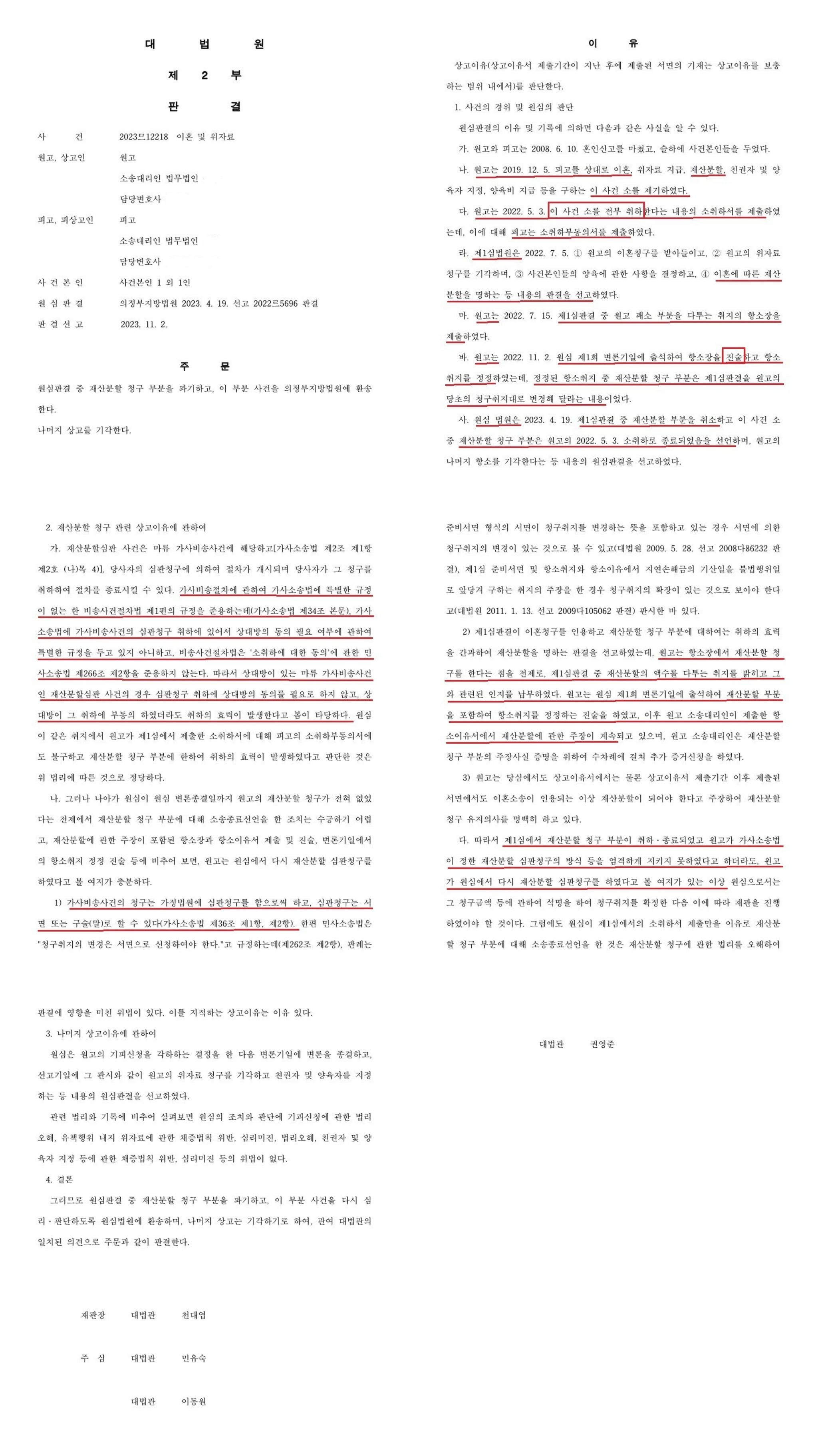 대법원 2023. 11. 2. 선고 2023므12218 판결은 위 의문점이 있어 추후 다른 사건에서 어떻게 적용될지는 지켜보아야 할 것입니다. 이는 소송대리인인 변호사가 추후 법률적 관점을 어떻게 주장하는지에 해당 판결이 변경되거나 다른 취지의 판결이 나올 가능성도 있을 것입니다.