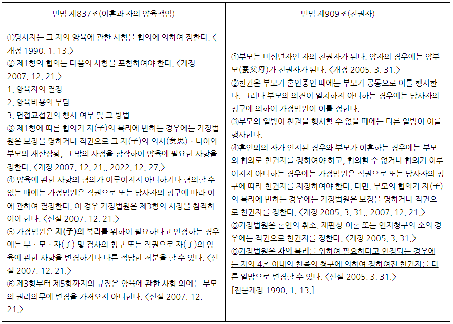 3) 「민법」 제837조 및 제837조의2(같은 법 제843조에 따라 위 각 조항이 준용되는 경우 및 혼인의 취소 또는 인지를 원인으로 하는 경우를 포함한다)에 따른 자녀의 양육에 관한 처분과 그 변경, 면접교섭권(面接交涉權)의 처분 또는 제한ㆍ배제ㆍ변경