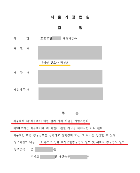 대부분의 재산이 배우자 앞으로 되어 있었기 때문에 재산분할 액수는 억대가 넘어갔고, 한가지 종류의 재산만 가압류해서는 모두 미리 확보해두기가 어려운 상황이었습니다.