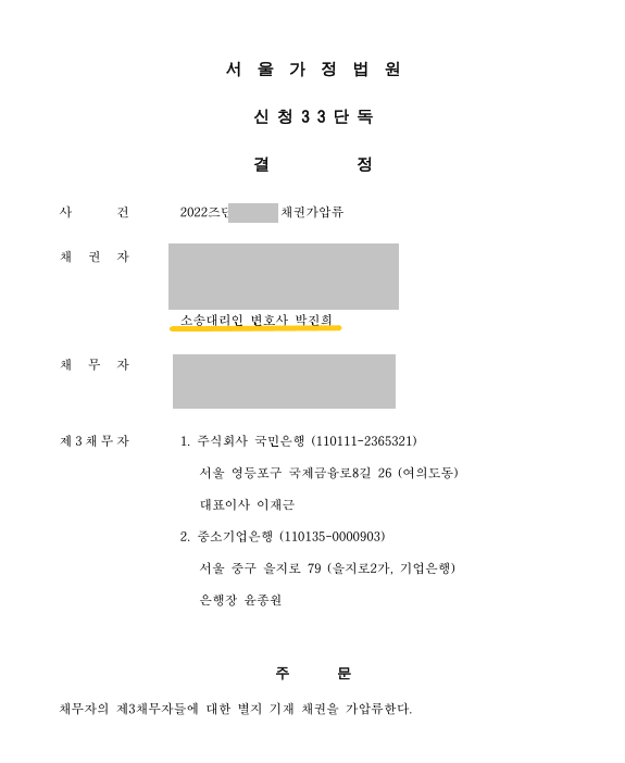 그리고 내심 걱정했었던 예금채권의 가압류신청에 대해서도
